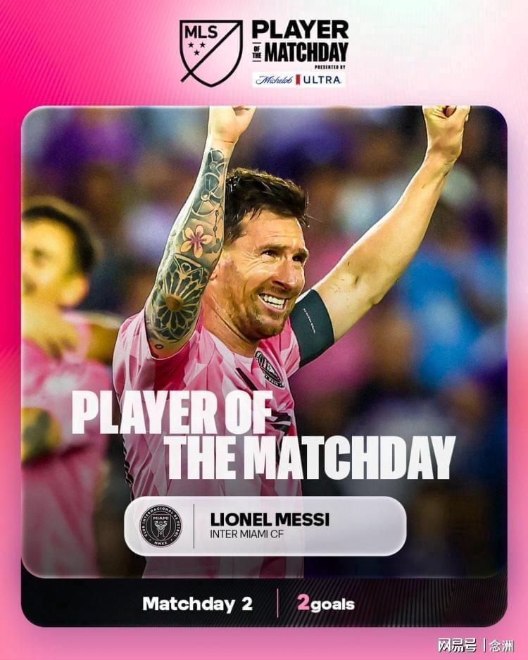 美职联第二轮,迈阿密国际客场4-2击败奥兰多城,梅西梅开二度+造红牌,帮助迈阿密国际取胜,美职联官方宣布,阿根廷巨星当选本轮比赛最佳球员。